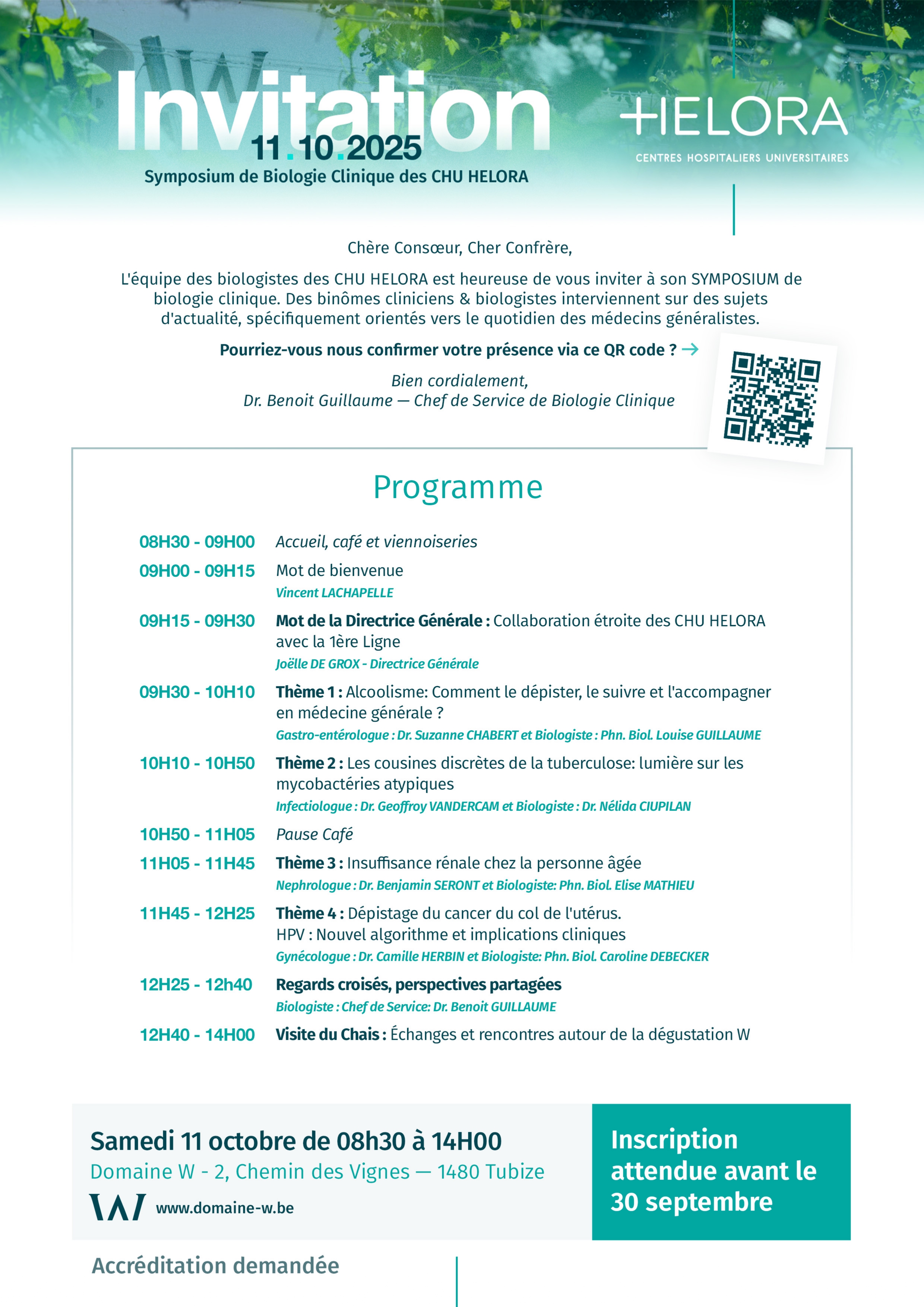 L'équipe des biologistes des CHU HELORA est heureuse de vous inviter à son symposium de Biologie Clinique.