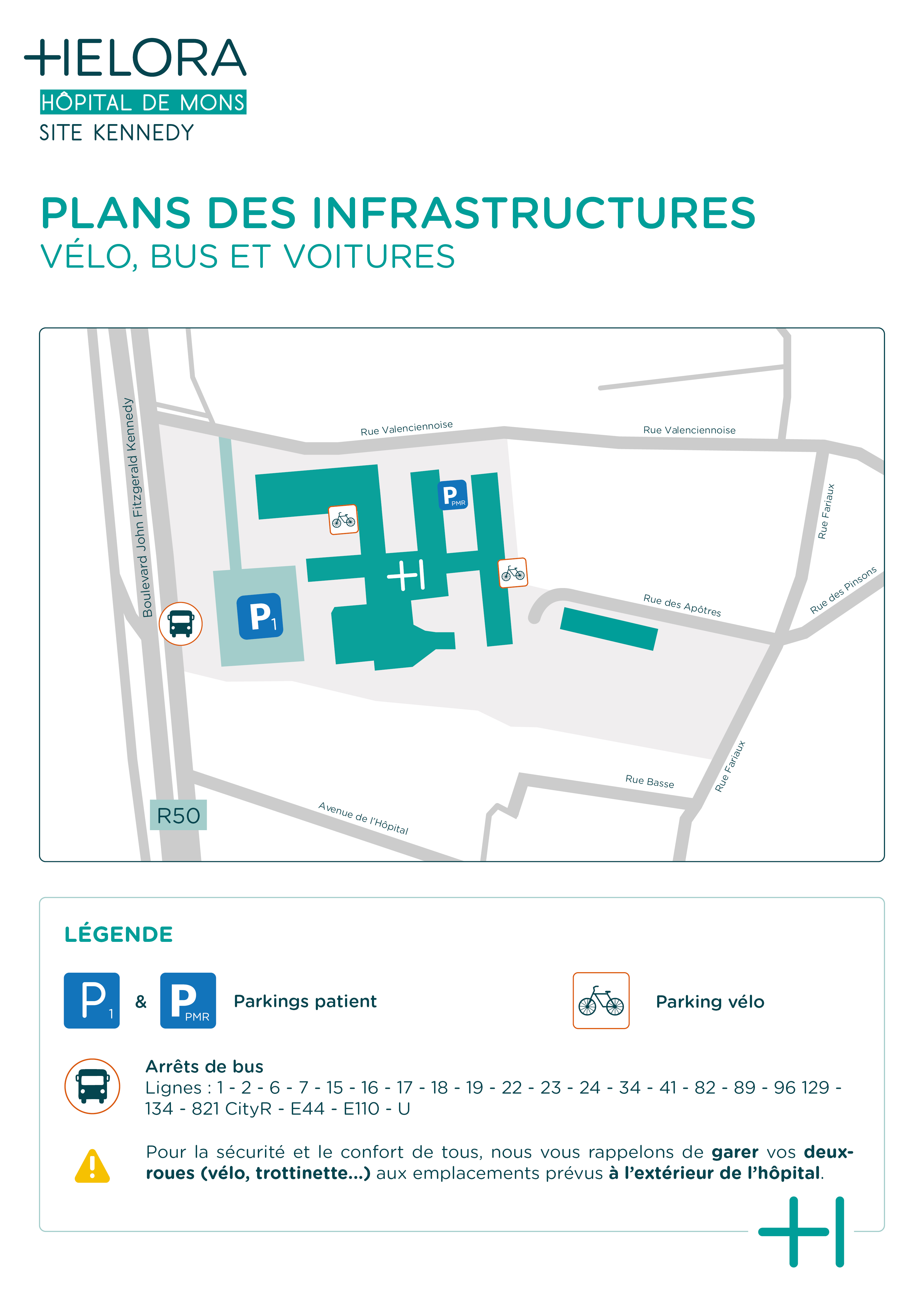 Le CHU Ambroise Paré se trouve sur le circuit urbain City'R des bus TEC (ligne rouge) et est facilement accessible depuis la gare de Mons. N'hésitez pas à consulter la carte pour découvrir ce circuit.